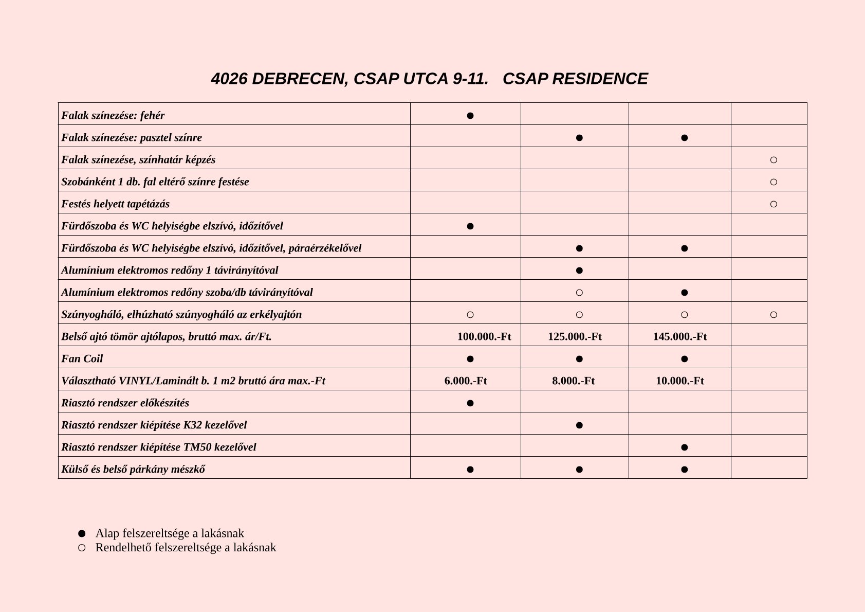3 árkategória - 3 felszereltségi szint