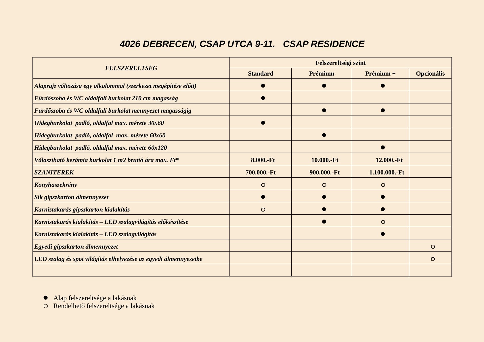 * standard felszereltségű lakásokra - hitelmentes konstrukció esetén!