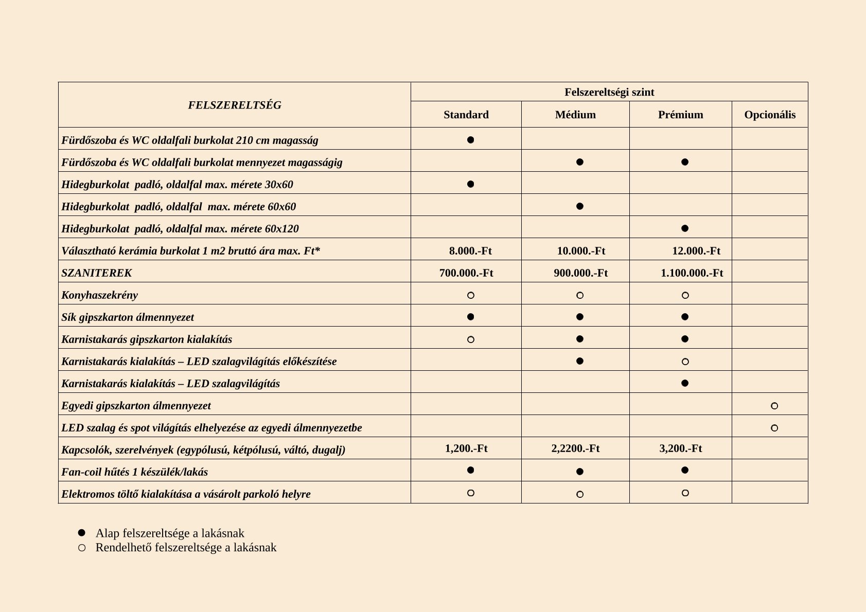Standard lakás négyzetméter ár:
